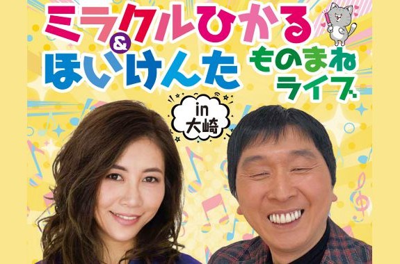 抜群の歌唱力の歌まねタレント「ミラクルひかる」と、マルチなお笑い芸人「ほいけんた」の爆笑ものまねライブが実現!